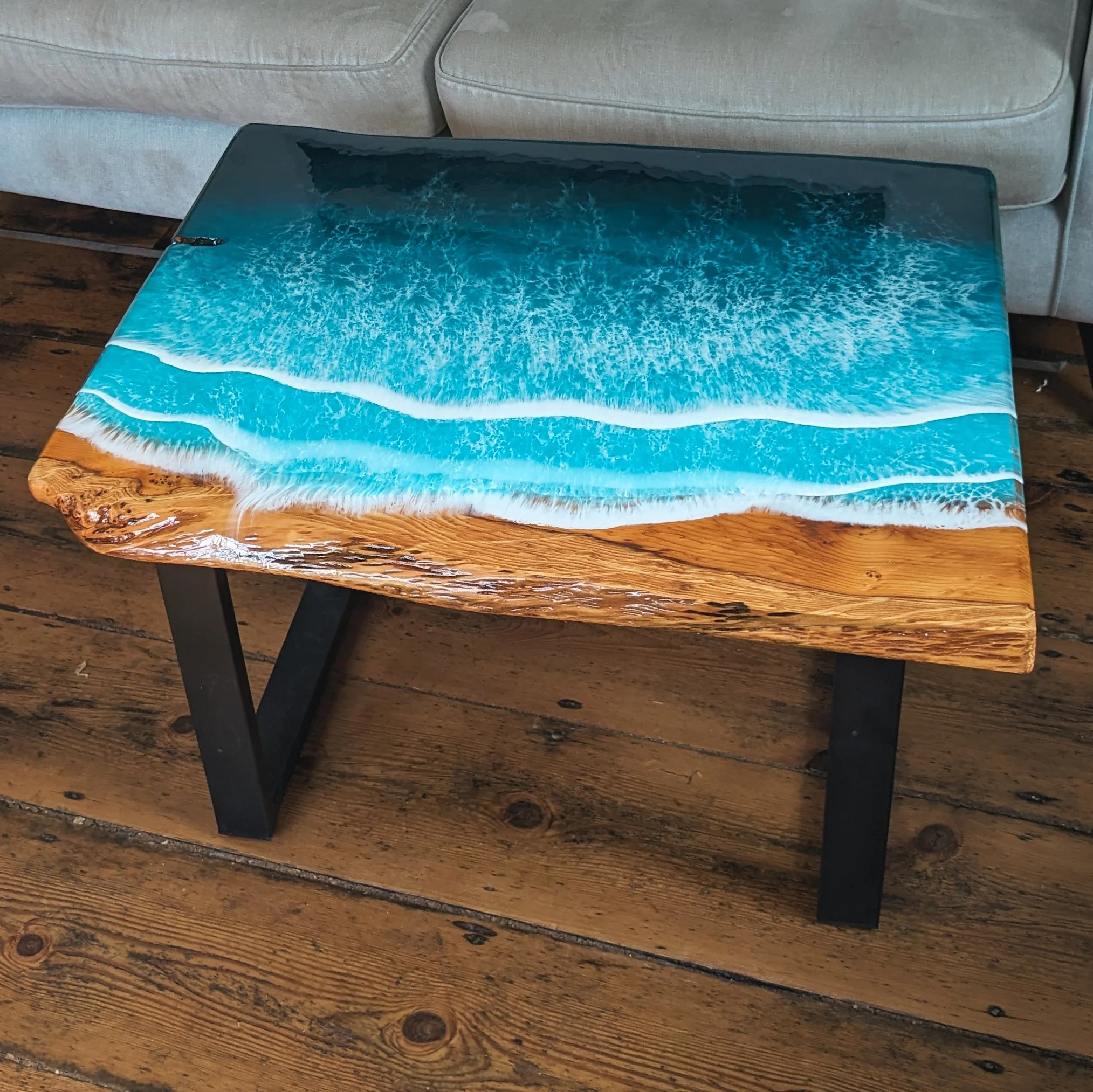 *Perfectly imperfect* | Items are sold as seen and may come with surface imperfections such as scratches, dust particles, dimpling or similar. This table has imperfections on the underside with some resin cracking and peeling. This doesn’t affect the structure and cannot be seen from above.