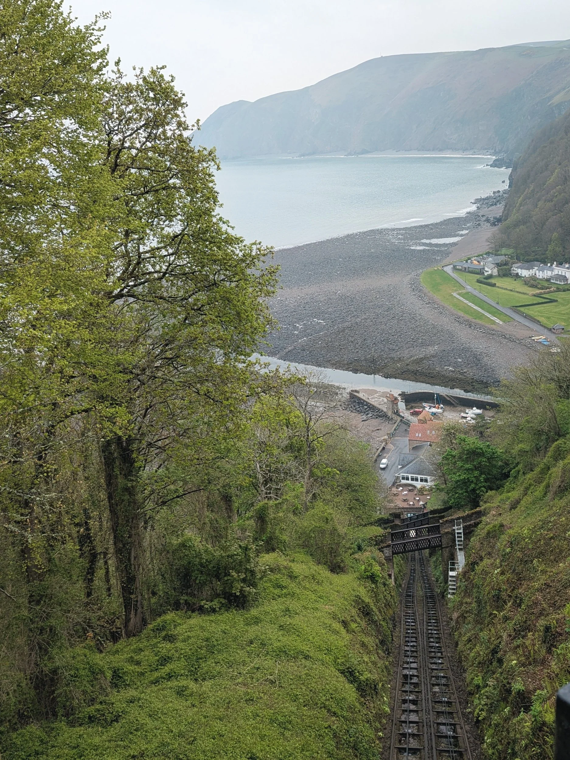 We came out from the coast path into the harbour and crossed over the river. We found Dan's parents who were meeting us for the night and a welcome pint in a pub which was so well deserved! A long hard day, but we still had to make it back to the campsite. Luckily Kate & Ian (Dan's parents) had found the last time for the cliff railway, so we made sure we were there and took the water powered tram up to Lynton. Definitely a cool experience!
