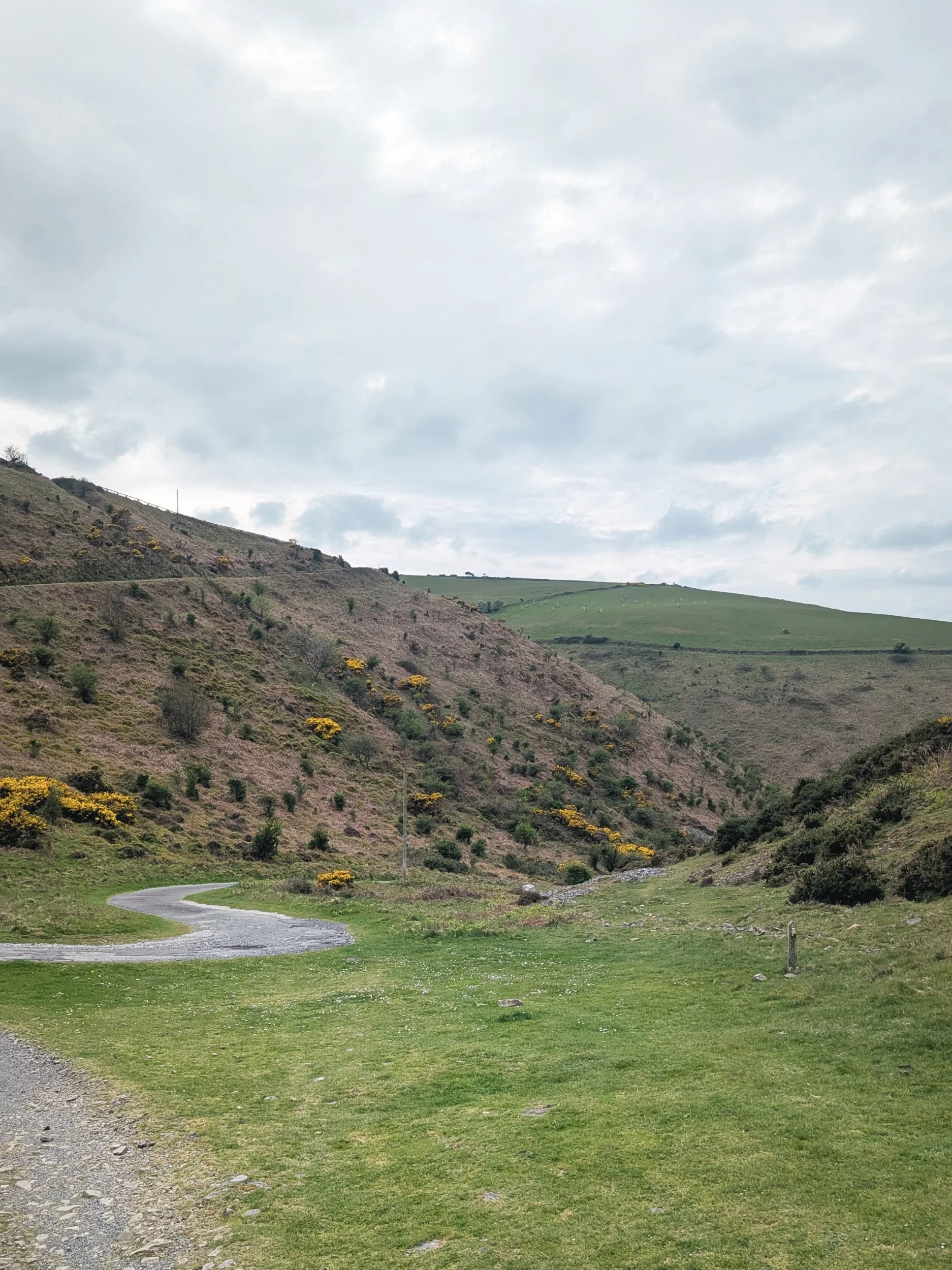The path curved around into a different landscape with a road down into a valley. We met two boys going the opposite way who had walked from Combe Martin that day and were asking for any wild camping spot recommendations. They were powering up the hill and we can only hope that we will be that strong by the end of our walk!